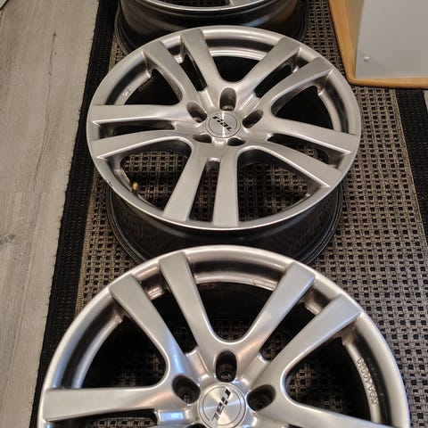 On kanttari osumaa tullut mutta vanteet ovat ok suorat. Pinnoitetta lähtenyt keskiöistä pieni hionta ja maalia niin saa vielä todella nätit.