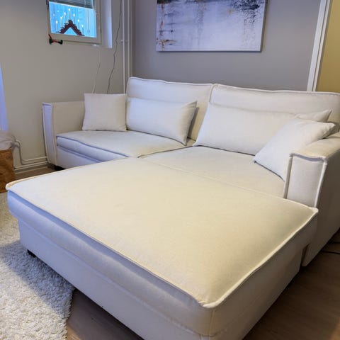 Valkoiset päälliset, jotka erittäin pehmeää matskua. Istun- ja selkätyynyjen päälliset konepestäviä.