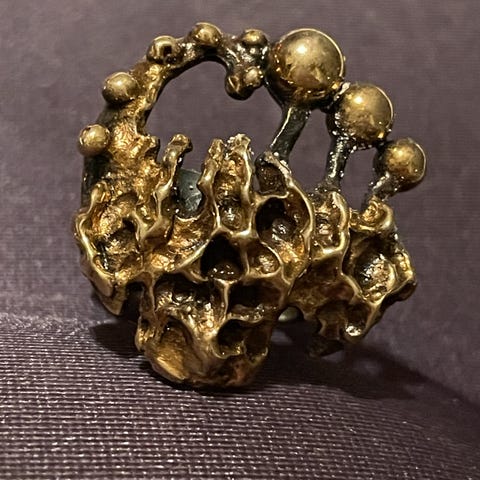 Antiikkinen esihistoriallinen pronssisormus. Iguaani tai lisko.