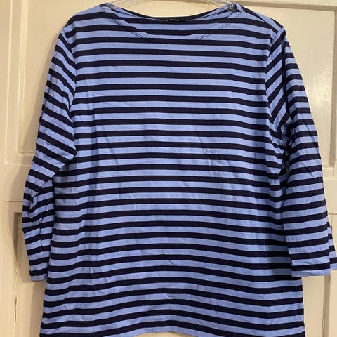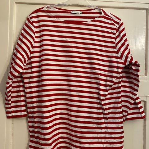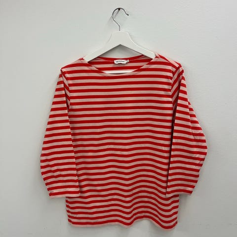 Marimekko Ilma paita, puuvillaa. Koko XL. Pieni mitoitus, mitat kuvissa. Väri: tummankeltainen/ vaaleansininen. Siisti käytetty kunto.