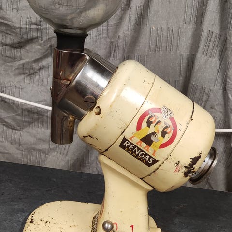 This coffee grinder is old and in working order. All original parts are perfect for decorating cafes and restaurants. Dimensions: 20cm x 20cm x 20cm.