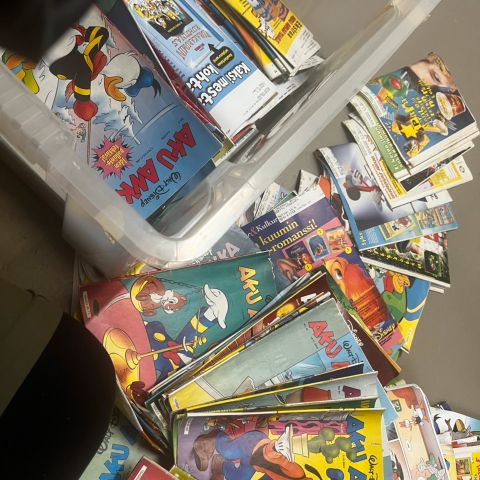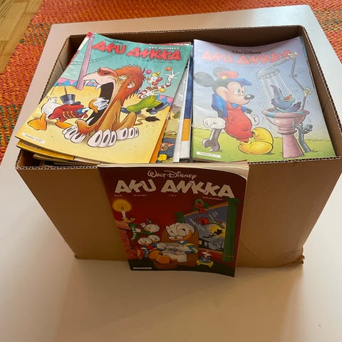 Myydään kuvan mukainen iso laatikollinen Aku Ankkoja. (351)