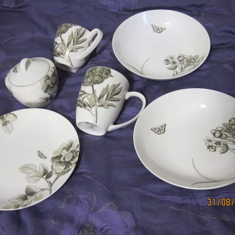 Queens Sanderson Etchings & Roses lautaset 2 kpl 30 cm