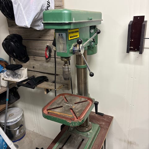 Myydään ylimääräiseksi jäänyt toimiva pylväsporakone. Säädettävä nopeus molempiin suuntiin. Korkeussäädettävä ja kallistettava pöytä.