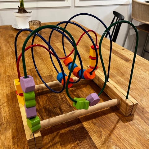 Annetaan Fisher-Pricen kävelykärry, hieman elämää nähnyt mutta aivan hyvässä kunnossa seuraavalla käppäilijälle. Lajitteluosaan kuuluvat palaset kadonneet.