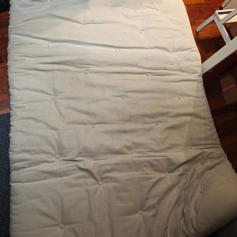 Iso futon tullut käytössämme tiensä päähän enkä enää suosittele ihmismäiseen nukkumiseen. Jos kuitenkin keksit käyttöä koirien pediksi, treenikämpälle akustiikkaa parantamaan, mitä ikinä, niin saa noutaa ilmaiseksi. Painaa pirusti mutta tuon ulko-ovelle johon saa auton eteen.