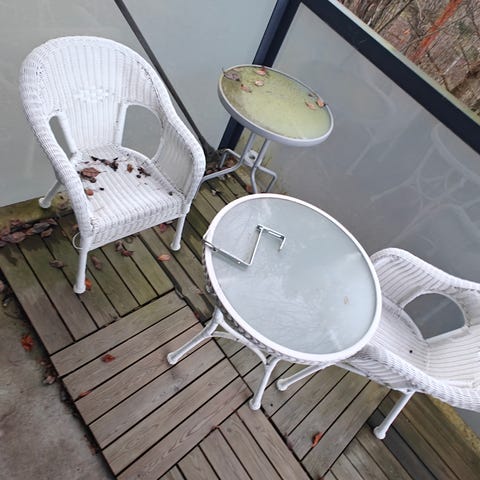 Muoviset tuolit ja pöytä. Pyyhin pöydän vielä ennen myyntiä! Mitä nopeampi haku sitä parempi.
