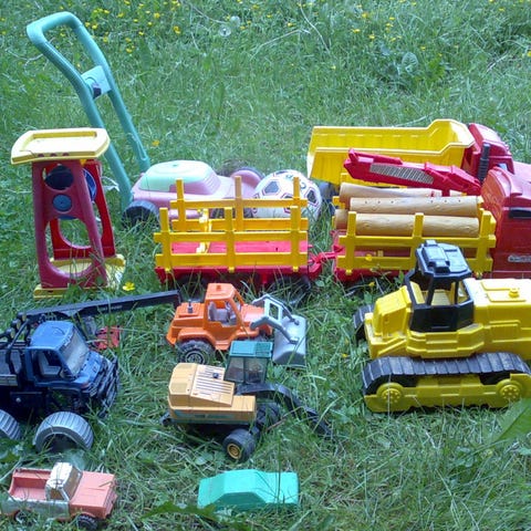 Joitakin Fisher Price -leluja lapsukaisen leikkihetkiin. Ne saa hakea 1,2 eurolla.