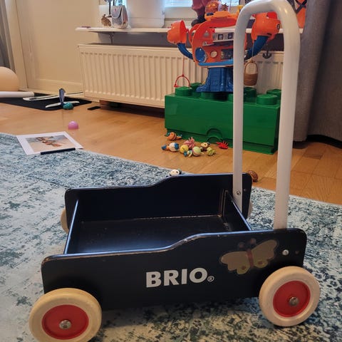 Käytetty taaperokärry auttaa pitämään tasapainon lapsen ottaessa ensimmäisiä askeliaan.