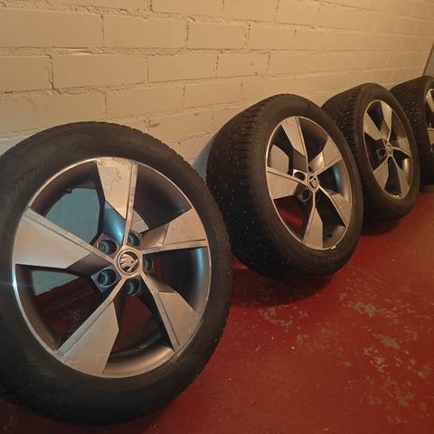 Myyntiin ylimääräiseksi jääneet renkaat. Renkaat aika loppu, mutta vanteet hyvässä kunnossa. Alkuperäiset 2018 skoda Octavia talvirenkaat