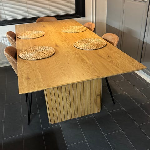 COLIMA-ruokapöytä ruokapöytä, valmistettu tammesta, mitat L 100 cm x P 210 cm, Ruskea. Muutto alta.