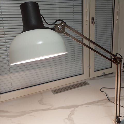 Vintage Lival arkkitehtivalaisin, erikoisempi malli P22, patentoitu. Toimiva. Pöytäkiinnike löytyy myös. Myynnissä myös Aris arkkitehtivalaisin, siitä oma ilmoitus.