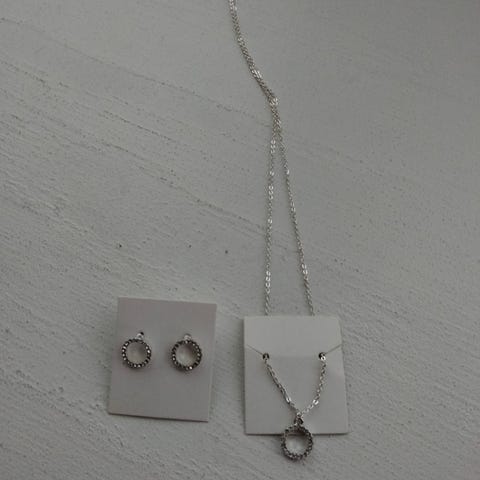Hopeaa olevat korut, kolme kaulakorua + yksittäinen korvakoru. toridiili käytössä