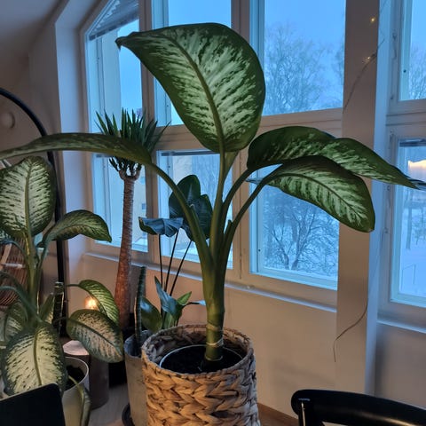 Ruukkuineen n.70cm. Murrettu turkoosi antrasiitti(?) Plantagen ruukku.