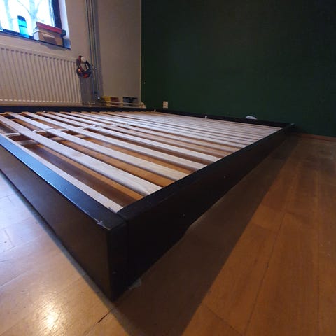 Puinen sängynrunko 160 cm patjalle. Sivuissa 2kpl tilavia vetolaatikoita, joihin mahtuu hyvin esim. peittoja ja tyynyjä säilöön. Rungossa on säleikkö pohja. Ei moitteita kunnossa ja myydään, koska tilalle tulee vanhaan maalaistaloon sopivampi sänky.