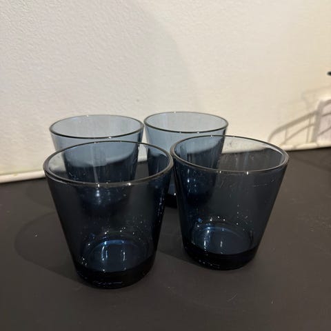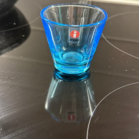 Iittala siniset lasiset juomalasit, 2 kappaletta. Vähän käytetty, siistissä kunnossa.