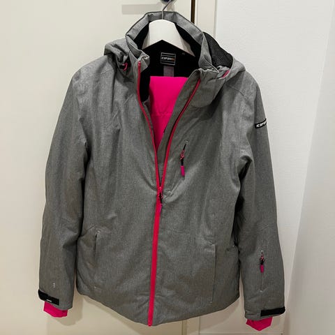 Icepeakin kevätulkoilutakki, koko 40. Yläosa turkoosimpi kuin kuvassa, alaosa musta.