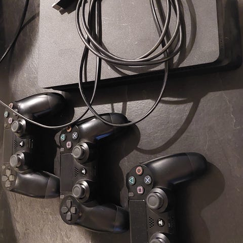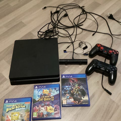 Sony Playstation 4 pelikonsoli musta väriltään. Mukana kaksi ohjainta, FC24 peli ja tarvittavat johdot liitäntää varten. Sopii viihdekäyttöön peleihin ja viihdesovelluksiin. Erittäin hyvässä kunnossa ja toimii moitteetta.