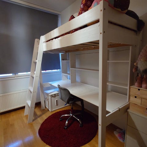 Myydään toinen kappale nukkumatti- korkea parvisänky. Olen tilannut noin 2-3 vuotta sitten Tuppu- kalusteesta.