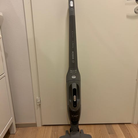 Muutaman vuoden vanha bosch johdoton imuri, pikasiivouksiin edelleen näpsäkkä kampe. Tehot on edelleen olemassa. Voi käyttää sekä varsi - että rikka-imurina. Lattiasuulakkeessa moottoroidut harjat jotka on helppo puhdistaa ja suodattimet on pestäviä. Pysyy tukevasti seisaallaan. 16.8v.