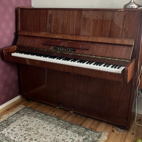 Elecia pystypiano ruskeaa puuta. Piano sisältää koskettimet ja jalkapolkimet. Sopii musiikin harjoitteluun ja esityksiin.