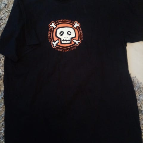 Todelliselle Pori-ihmiselle vanha Porin Lämpövoima Oy:n mainospaita, logo on pienellä hihassa. Meleerattu harmaa, XL. Ehjä, vähän käytetty MUTTA: kellertävää kaulaaukon alapuolella, en tiedä onko pinttymää vai mitä, en tiedä myöskään onko pesussa lähtevää, että pienellä varauksella. Tämä pitää pestä, on ollut pitkään kellarissa säilytyksessä ja on ummehtuneen hajuinen. Paita on itsessään paksua ja kestävää puuvillaa kuten 90-luvulle oli ominaista.