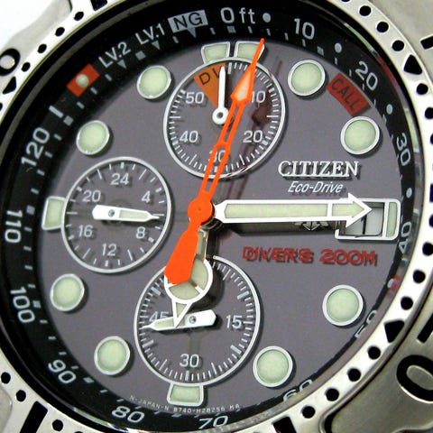Kellon runko on valmistettu ruostumattomasta teräksestä. Kello on vesitiivis 300 metriin asti ja sopii sukelluskäyttöön. Ranneke on kumia, ja kellossa on Eco-Drive -aurinkokennoteknologia, joka lataa akun valolla.