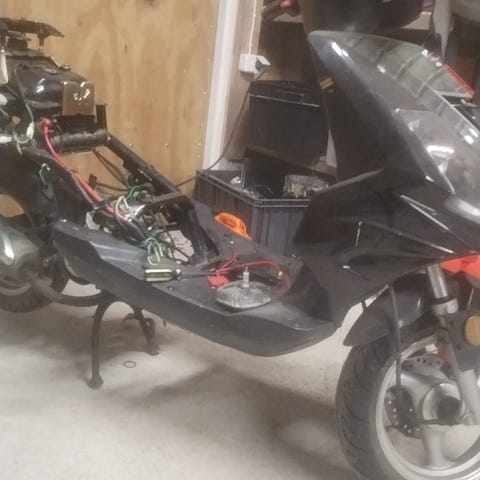 Jonway skootteri sinisen ja valkoisen värisenä. Sopii henkilöliikenteeseen ja lyhyisiin matkoihin. Varaosiksi