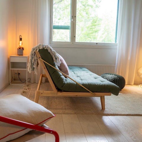 Myyntiin vierassänkynä vuoden verran ollut harvakseltaan käytetty Karup Design Base vuodesohva. Linkistä löytyy lisätietoa sohvasta. On tosi näppärä kun vieraspetivaatteet tai omat, jos käyttää sänkynä olohuoneessa pienessä asunnossa nukkuessa, saa piiloon helposti ja nopeasti päivän ajaksi. Vuosi sitten sai valita, että ostaako nuo sivulaatikot, jotka näkyy Karupin kuvassa. Niitä ei tule mukana, näkyvät linkin kuvissa. Ostettu vuosi sitten Vepsäläiseltä hintaan 2150 euroa.