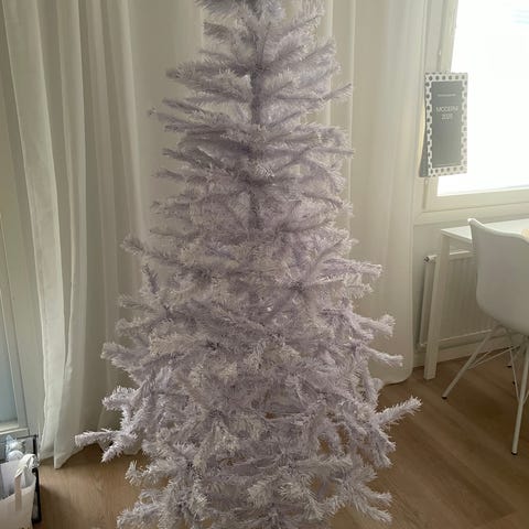 Noin 165 cm pitkä joulukuusi valoilla. Ollu jo noin 7 vuotta meillä. Valot toimii. Menee 3 osaan. Säilytetty alkuperäisessä laatikossa kuiva varastossa.