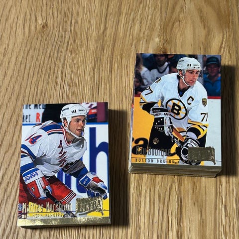 90 kappaletta sekalaisia lätkäkortteja sarjasta Score 1995-96. Ei tuplia.