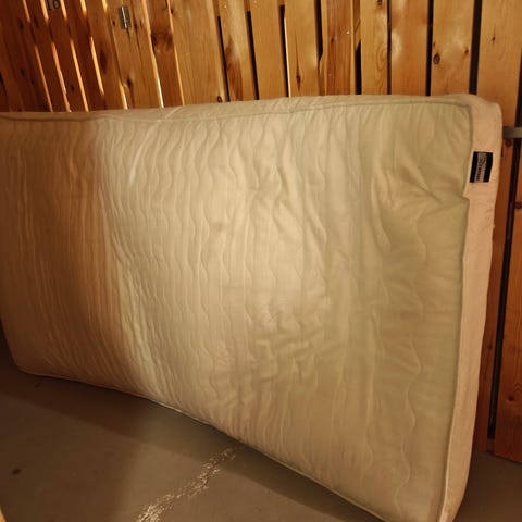Kissatalous. Patja säilytetty tilassa, johon kissoilla ei ole pääsyä.