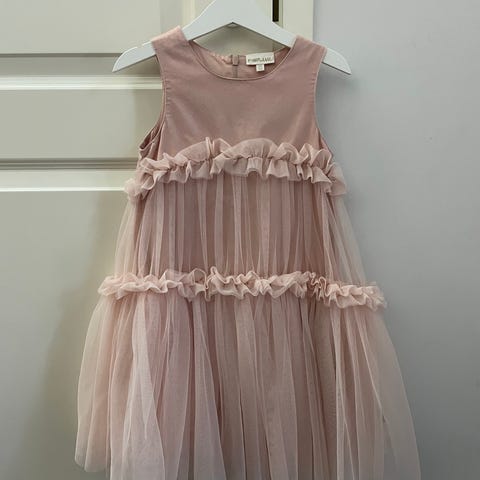 Myydään siisti POMPdeLUX paljettityllimekko koossa 110/116cm. Hyvä, käytetty kunto.