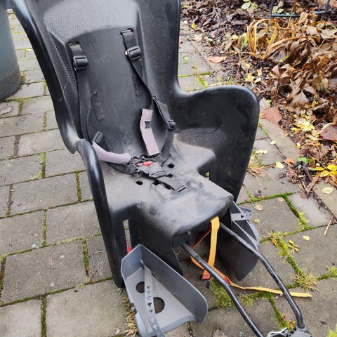 Annetaan lastenistuin pyörään. Istuin ei ole ollut itsellä käytössä, joten tarkempia tietoja siitä ei ole.
