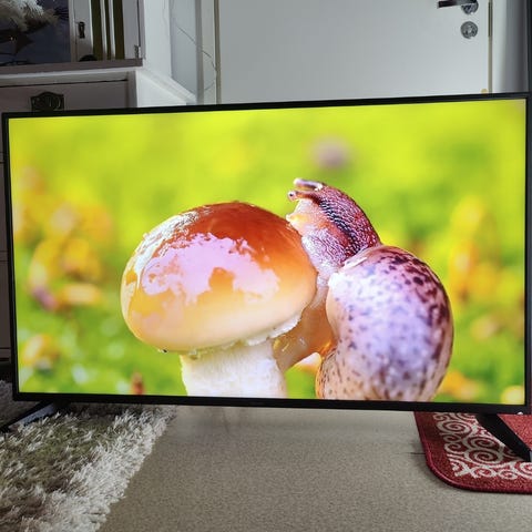 Myynnissä 50-tuumainen SHARP:n televisio. Kaupan päälle chromecast-laite, jolla pystyy WiFi-yhteyden kautta streamaamaan suoratoistona.