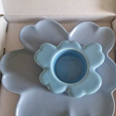 Myydään kuvassa olevat Marimekon Shape lautanen ja tuikku