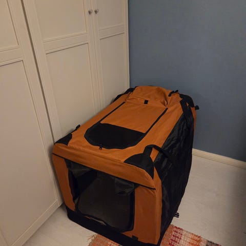 Myynnissä käyttämätön koiran kevythäkki, koko XL.