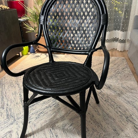 Aldorassa on kaunis aidosta rottinkista valmistettu nojatuoli pehmeillä linjoilla, taidolla käsin kudottu.