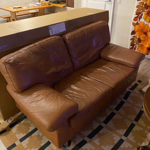 Älyttömän mukava sohva tarvitsee uuden kodin. Todella muhkeat ja muotonsa pitävät selkätyynyt.