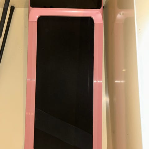 iWalk juoksumatto, jossa musta juoksualusta ja valkoinen runko. Soveltuu kotikäyttöön. Juoksumatto on varustettu ohjauspaneelilla ja tukevilla käsinojilla.