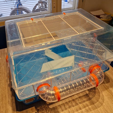Tästä aloituspakkaus seuraavalle. Mukana erilaisia sekoituksia laadukasta ruokaa, jauhomatoja, juoksupyörä, wc-hiekka, herkkutanko, kesäheinää sekä nakerteluun sopiva uusi heinäpesämökki. Kaupan päälle toisesta kuvasta löytyvä elämää nähnyt duna.