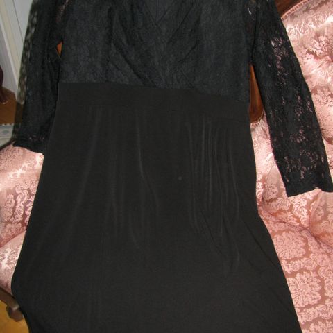 Uusi käytttämätön musta iltapuku/ juhlapuku. Mekossa on pitsiyksityiskohtia yläosassa ja läpikuultava kangas olkapäiden kohdalla. Kai-kai noin 52 cm. ostettu 172 cm pitkälle ja vastaa vaatekokoa 44-46. Hinta 50€/tarjous