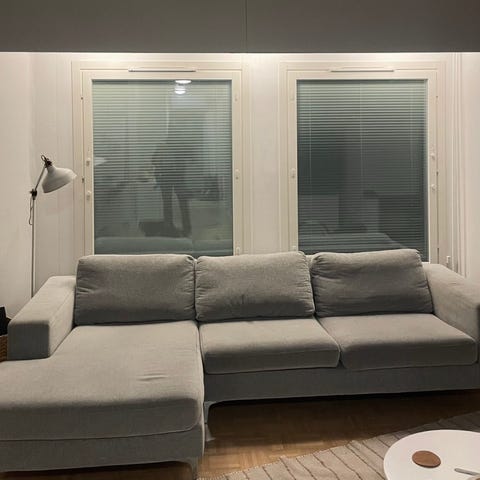 Sohva on mahdollista irrottaa kahteen osaan, mikä helpottaa kantamista. Vain nouto. Maksu mobilepaylla tai käteisellä. Hinta neuvoteltavissa.