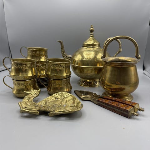 Tyyli on antiikkinen, ja esineet edustavat klassista muotoilua, jossa on runsaasti koristeellisia elementtejä.