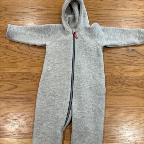 Ruskovillan tummanharmaa merinofillafleecehaalari kokoa 90/100. Vastaa enemmän kokoa 92, 100 cm pitkälle testattu liian lyhyeksi hihoista ja lahkeista. Hihat käännettävissä pusseiksi, lahkeet ei. Ehjä, mutta jo käytetty haalari. Vetskari toimii moitteitta. Juuri pesty.