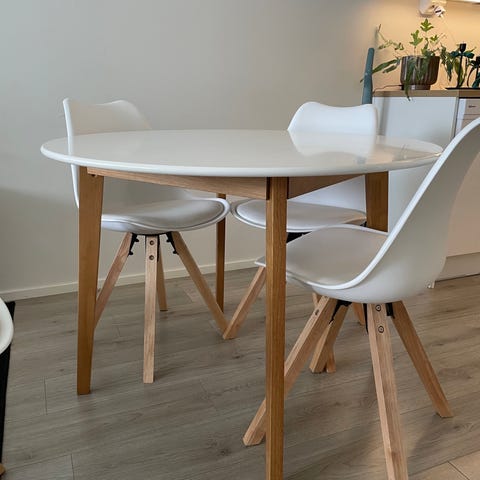 Myydään Jysk Jegind valkoinen ruokapöytä, puun värisillä jaloilla. Halkaisija 105cm ja korkeus 75cm. Muuton myötä jäänyt turhaksi kun ei passannut uuteen kotiin. Ehjä ja siisti. Lisätietoja linkistä: https://jysk.fi/ruokailutila/ruokapoydat/ruokapoyta-jegind-o105-valkoinen-luonnonvarinen?utm_source=google&utm_medium=cpc&utm_campaign=5.%20JFI%20-%20Shopping%20-%20BG%20%28Brand%20generic%29%20-%20CSS&utm_content=All%20products&utm_term=3690563&gad_source=1&gad_campaignid=2022893186&gclid=CjwKCAiAjc7KBhBvEiwAE2BDObrDDuVjntDTgZpRWxBk3u3cJ756DJDrg3ackt1MR0BX9calZc2HuRoCG_MQAvD_BwE