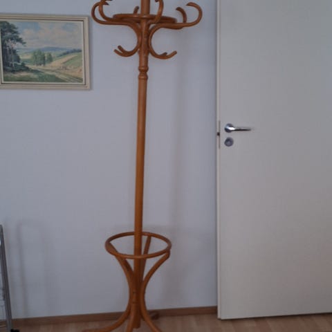 Tyylikäs ja tukeva Venla-pystynaulakko. Metallivartinen naulakko sopii pieneen tilaan. Naulakon korkeus on 170 cm ja jalan halkaisija 30 cm.