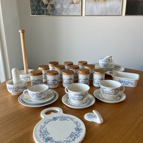 Arabia purkkisarja sinisellä kukkakuvioinnilla ja korkilla