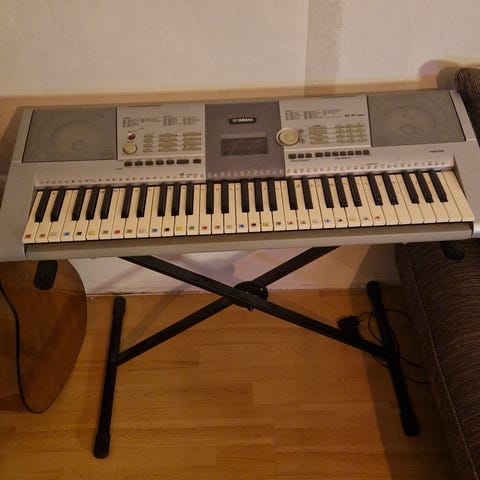Yamaha sähköpiano, vaaleanruskea väri. Mukana pianoistuin ja nuottiteline, soveltuu kotikäyttöön ja harjoitteluun. Ei ole täyttä varmuutta jokaisen toiminnon toimivuudesta, mutta perinteinen soittaminen ainakin onnistuu. Näyttö viallinen.
