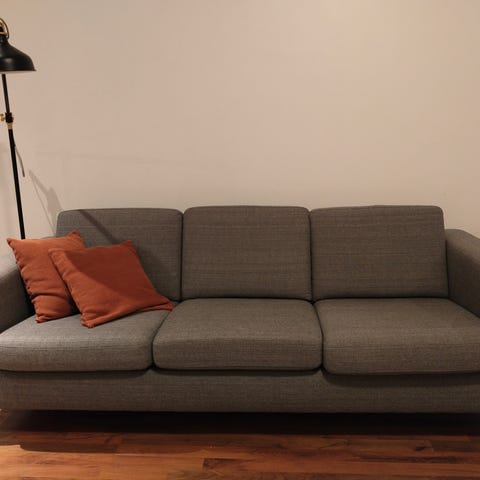 Pienempään asuntoon muuton myötä ylimääräiseksi isosta moduulisohvasta jäi 2 käsinojatonta palaa. Molemmat samanlaisia, toisesta vaan nyt selkänoja irroitettuna, kun ollut rahina hetken.